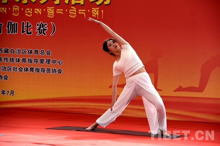 比賽中,來自西藏各地的40位瑜伽愛好者以柔韌的身姿表現出運動之美,以自信、歡愉的精神麵貌展現新時代的西藏幸福生活。(新利平台 記者/次旦拉姆)