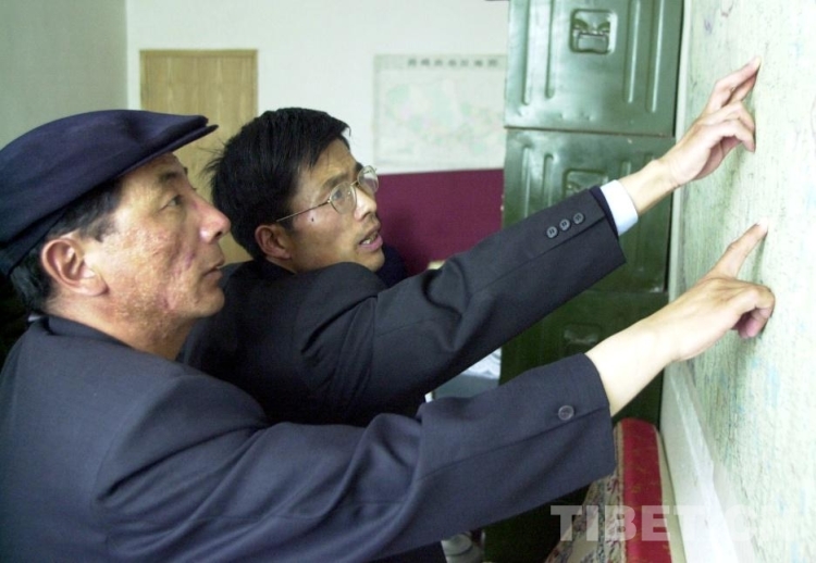 這是時任雙湖特別區(現雙湖縣)區委書(shu) 記的範科創(右)與(yu) 副區長珠巨(左)在研究當地的經濟發展規劃。為(wei) 了無人區開發事業(ye) ,範科創在這裏默默奉獻了15個(ge) 春秋。1986年,他被西藏自治區黨(dang) 委授予“優(you) 秀黨(dang) 務工作者”榮譽稱號(唐召明2001年攝)