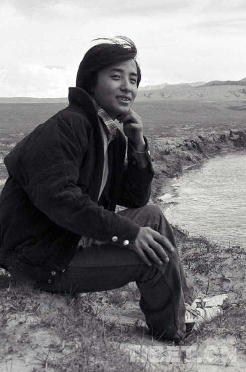 這是原文部辦事處(現尼瑪縣)機要科陳傑在小鎮旁河邊請記者為(wei) 他拍照留念,以寄回家鄉(xiang) 免父母擔憂(唐召明1987年攝)