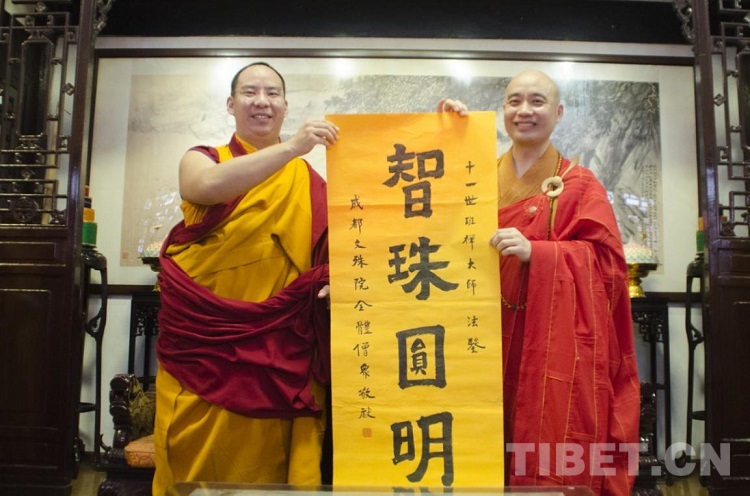“中國佛教有三大語係,同根同源,在不同的信眾(zhong) 群體(ti) 中形成了相對差異化的傳(chuan) 承方式,但是都有著共同的理念、價(jia) 值、信仰,和對真理的追求、對因果的敬畏。特別是在新中國,中國佛教得到更好的傳(chuan) 承與(yu) 發展,在新時代,我們(men) 三大語係交往、交流更加密切、更加頻繁,相互學習(xi) ,相互促進,共同推動佛教中國化方向發展,共同為(wei) 祖國統一、民族團結、地區安寧、人民幸福作著貢獻。”班禪在文殊寺參觀時說:“中國共產(chan) 黨(dang) 重視宗教工作,對宗教的發展指明方向、提供平台,這是佛門盛世。”