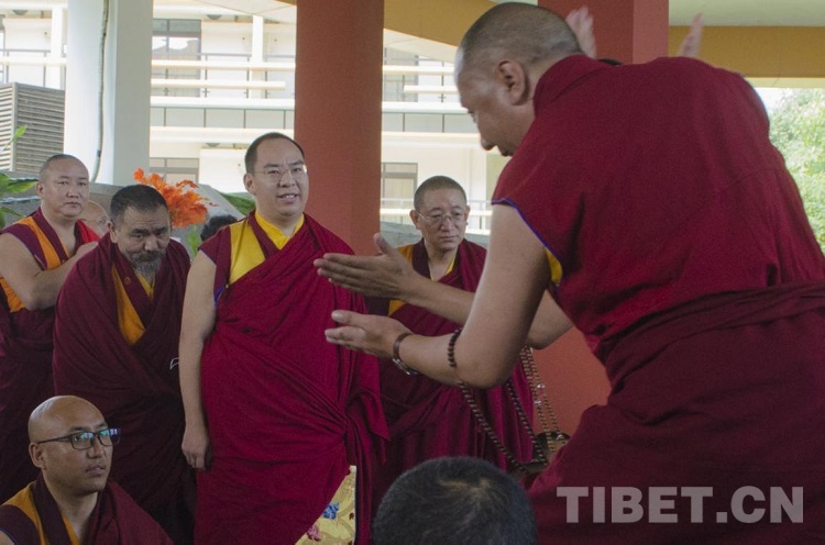圖為(wei) 班禪在四川藏語佛學院觀看學員辯經 攝影:歐帆