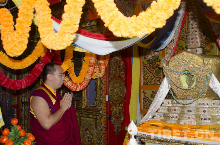 圖為(wei) 班禪在六世格達活佛靈塔前 攝影:歐帆