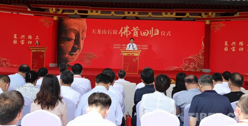 7月24日,天龍山石窟佛首回歸儀(yi) 式在山西太原舉(ju) 行。文化和旅遊部副部長、國家文物局局長李群,山西省委書(shu) 記、省人大常委會(hui) 主任林武為(wei) “複興(xing) 路上 國寶歸來”特展揭幕,山西省委副書(shu) 記、山西省人民政府省長藍佛安,山西省委常委、太原市委書(shu) 記羅清宇致辭,山西省委常委、宣傳(chuan) 部部長呂岩鬆,山西省委常委、秘書(shu) 長李鳳岐,佛首捐贈人張榮出席儀(yi) 式,山西省人民政府副省長張複明主持儀(yi) 式。