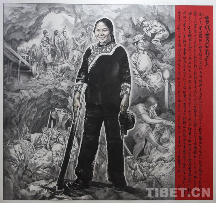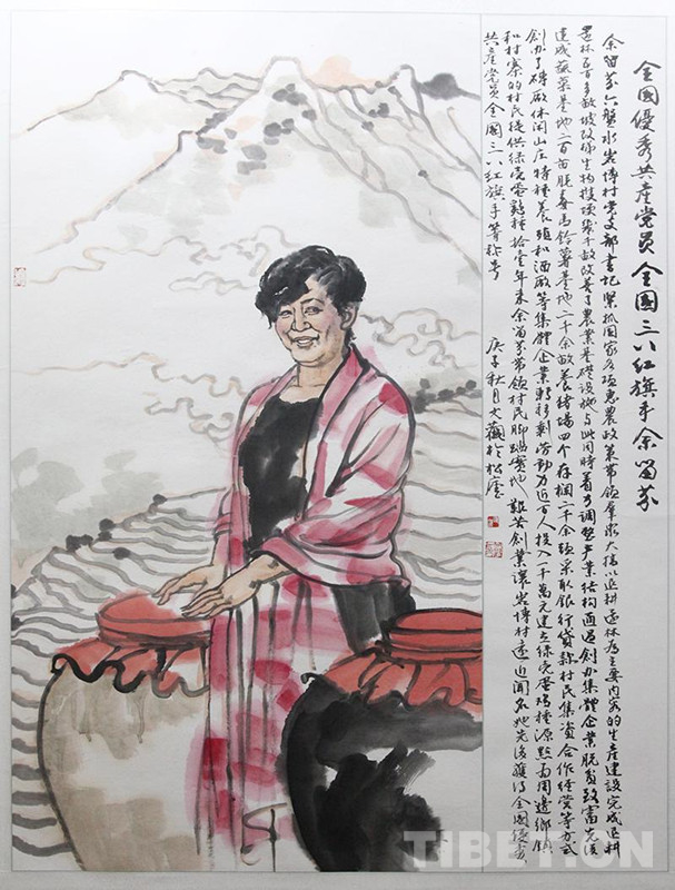 圖為(wei) 中國畫作品《餘(yu) 留芬——六盤水市盤州市岩博村黨(dang) 委書(shu) 記》,作者錢文觀