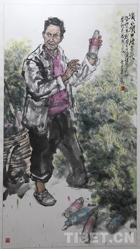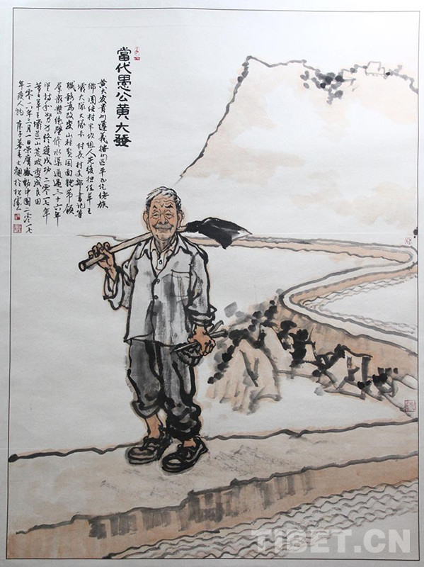 圖為(wei) 中國畫作品《黃大發——遵義(yi) 市播州區平正仡佬族鄉(xiang) 團結村名譽村支書(shu) 》,作者錢文觀