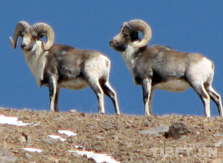 這是生活在羌塘國家級自然保護區的國家一級保護動物西藏盤羊(唐召明2008年4月14日攝)