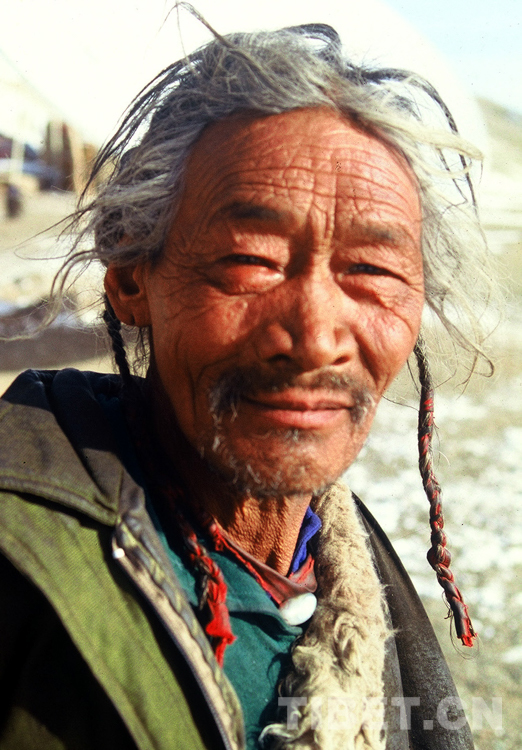 這是雙湖辦事處嘎措鄉(xiang) 老牧人紮巴(唐召明2001年攝)