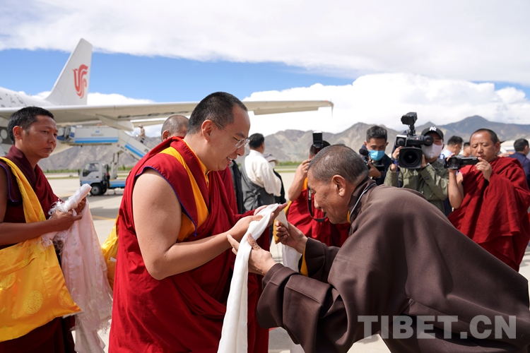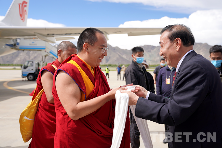 西藏自治區黨(dang) 委常委、統戰部部長,區政協黨(dang) 組副書(shu) 記、副主席旦科等西藏自治區相關(guan) 領導在貢嘎機場迎接,互敬哈達。