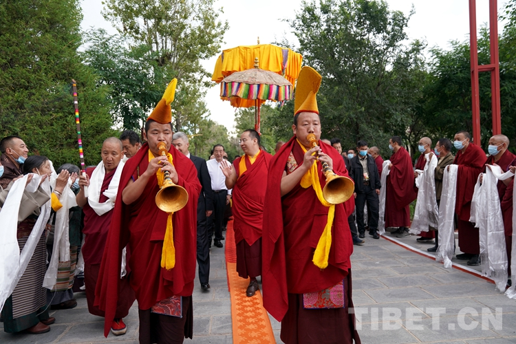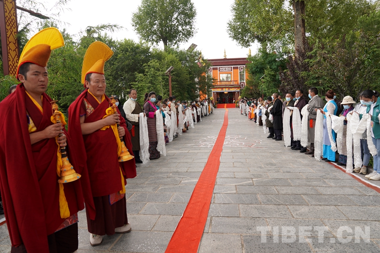 隨後,班禪乘車抵達位於(yu) 拉薩的班禪行宮雪林多吉頗章。細雨綿綿的拉薩城,清風習(xi) 習(xi) 涼爽宜人。西藏自治區黨(dang) 委常務副書(shu) 記、自治區政協黨(dang) 組書(shu) 記莊嚴(yan) 與(yu) 十九屆中央候補委員,西藏自治區黨(dang) 委副書(shu) 記、拉薩市委書(shu) 記嚴(yan) 金海等西藏自治區相關(guan) 領導在此迎候。拉薩各大寺廟的僧眾(zhong) 代表和信教群眾(zhong) 代表手捧潔白的哈達在微微細雨中翹首以盼班禪的到來。