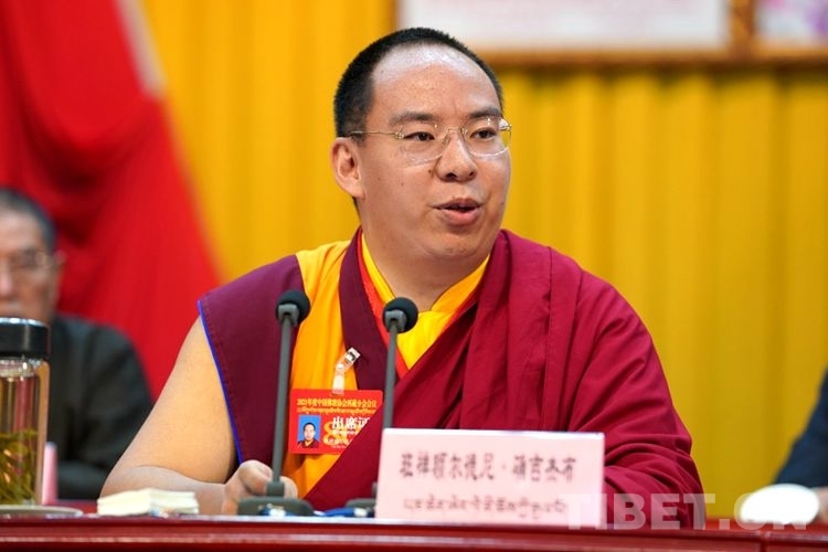 圖為(wei) 全國政協常委、中國佛教協會(hui) 副會(hui) 長、中國佛教協會(hui) 西藏分會(hui) 會(hui) 長班禪額爾德尼•確吉傑布作總結講話 攝影:王淑
