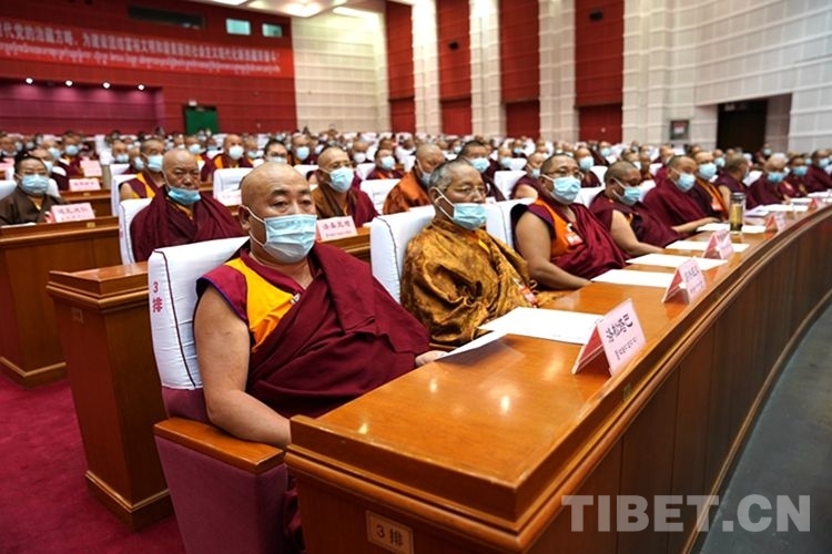 班禪強調,在下一步工作中,藏傳(chuan) 佛教界代表人士、佛協理事、寺廟僧尼要把學習(xi) 好、宣傳(chuan) 好、貫徹好、落實好習(xi) 近平總書(shu) 記重要講話精神作為(wei) 當前和今後一個(ge) 時期的重大政治任務,與(yu) 常態化推進“遵行四條標準、爭(zheng) 做先進僧尼”教育實踐活動結合起來,準確把握總書(shu) 記對西藏各項工作提出的重要要求,提出切實可行的貫徹意見,確保習(xi) 近平總書(shu) 記的重要講話精神在佛協西藏分會(hui) 和各寺廟落地見效。銘記習(xi) 近平總書(shu) 記諄諄教誨,秉承佛教眾(zhong) 生平等、慈悲為(wei) 懷的理念,繼承藏傳(chuan) 佛教愛國愛教的傳(chuan) 統,推動藏傳(chuan) 佛教與(yu) 社會(hui) 主義(yi) 社會(hui) 相適應,以新的麵貌、新的業(ye) 績為(wei) 中國共產(chan) 黨(dang) 成立100周年、西藏和平解放70周年獻禮。