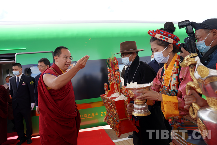 上午10點35分,班禪乘坐的複興(xing) 號緩緩駛入日喀則火車站。西藏自治區人民政府副主席、黨(dang) 組成員,日喀則市委書(shu) 記張延清等市委相關(guan) 領導在火車站迎接,與(yu) 班禪互敬哈達、互致問候。