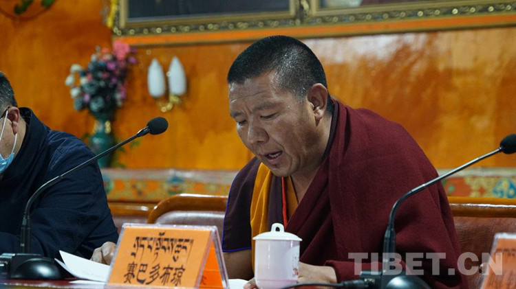 圖為(wei) 紮寺管委會(hui) 副主任賽巴·多布瓊發言 攝影:楊眉笑