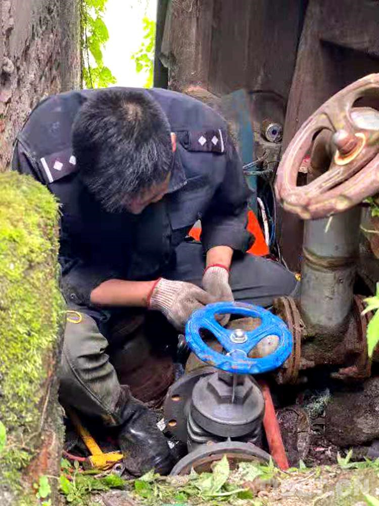 8月16日淩晨,樟木口岸夜晚因突如其來的暴雨造成了泥石流,滾落的石頭擊中了水閘閥門,導致閥門損壞,無法正常通水,從(cong) 而影響了商貿城執勤點民警正常的飲水。該執勤點是根據口岸限定區域的需要新增設的點位,民警需要全天候24小時駐守,由於(yu) 補給較為(wei) 困難,民警需要用開水煮泡麵、自熱米飯等吃飯成了問題。情急之下,民警趙廣發冒著大雨,頂著被螞蟥咬的危險,憑著自己所學的維修知識,花費了近3個(ge) 小時,硬著頭皮把它維修好了。