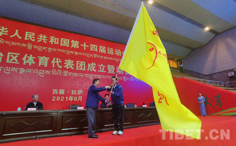 圖為(wei) 第十四屆全運會(hui) 西藏自治區體(ti) 育代表團成立授旗儀(yi) 式 攝影:賈華加