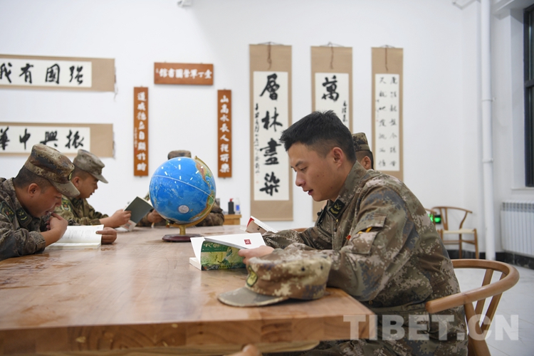 圖為(wei) 官兵正在圖書(shu) 館看書(shu)