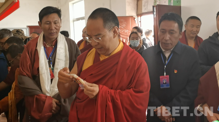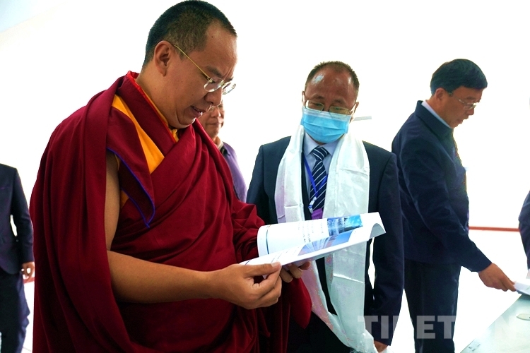 圖為(wei) 班禪認真翻閱申紮縣城集中供暖熱廠有關(guan) 資料 攝影:王淑