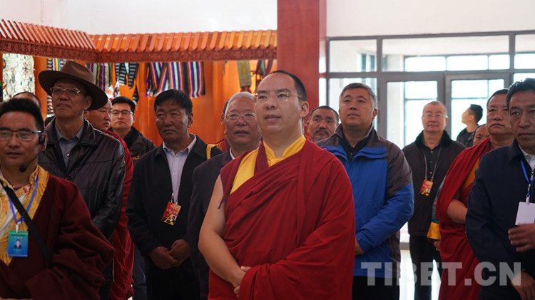 圖為(wei) 班禪觀看嘎確牧業(ye) 產(chan) 業(ye) 示範基地宣傳(chuan) 片 攝影:楊眉笑