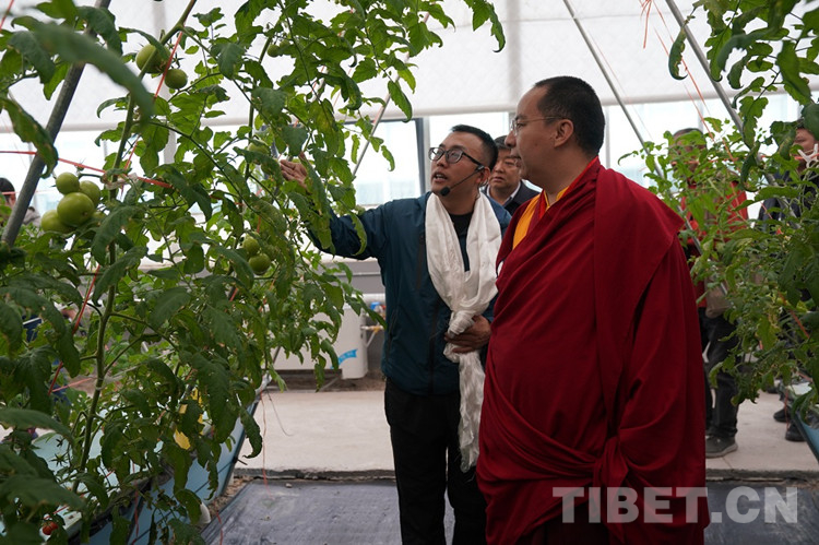 班禪走入蔬菜園、花卉園、熱帶植物園等溫室園區,不時俯身仔細查看農(nong) 作物長勢。得知溫室內(nei) 竟種有百香果,班禪高興(xing) 地說道:“百香果可是熱帶植物,能在那曲海拔這麽(me) 高的地方種出來,很不容易!”在蔬菜園,班禪打開種植擋板,聽取無土栽培種植技術介紹,詳細詢問營養(yang) 液噴灑時間、頻率等情況,點頭表示肯定。