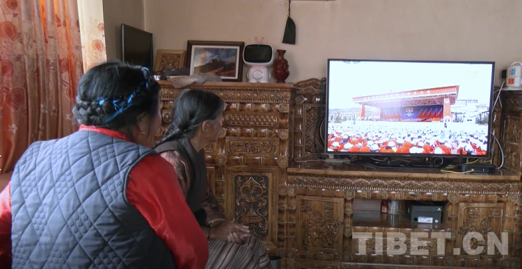 資料圖:日喀則市群眾(zhong) 在通過電視收看慶祝西藏和平解放70周年大會(hui) 實況 來源:日喀則市廣播電視台