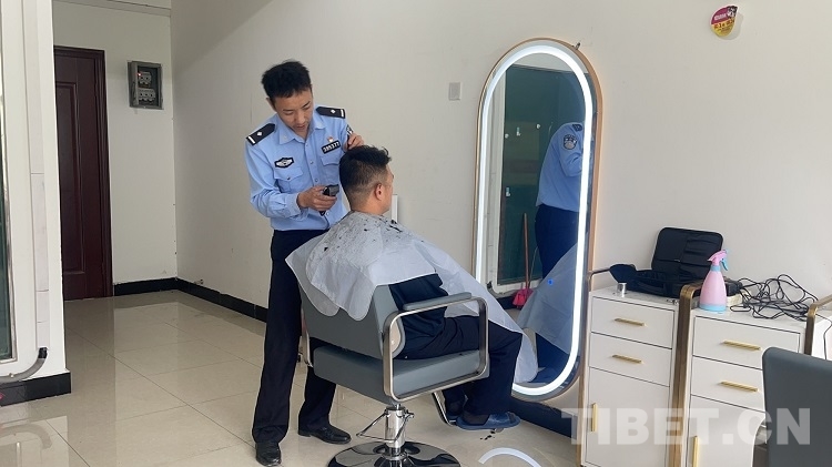 民警頓珠主動承擔起了為(wei) 戰友們(men) 理發的工作。理發這門手藝,是頓珠自學來的。參加工作之前,他就在老家村莊和鄉(xiang) 親(qin) 們(men) 相互幫忙剪頭發。參加工作後,他就利用回家探親(qin) 休假的時間學習(xi) 理發技術。時間久了,他的理發技術越來越成熟,手藝也越來越好。每當節假日、周末,大家在休息的時候,他的小理發室就會(hui) 變得異常火爆,洗、剪、吹,整天都是忙忙碌碌的。漸漸地“托尼”老師——頓珠的名聲傳(chuan) 遍了樟木鎮,在鎮裏工作的建設工人也常常會(hui) 慕名前來。