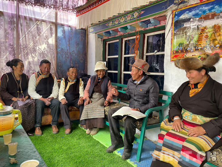 圖為(wei) 索朗頓珠進農(nong) 戶宣講黨(dang) 史知識