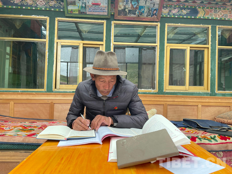 索朗頓珠積極參加鎮、村組織的“紅色夜校”“讀書(shu) 班”等學習(xi) 培訓,一天不落的準時收聽收看最新時事新聞,隨時隨地記錄黨(dang) 的最新政策、黨(dang) 史知識的學習(xi) 內(nei) 容和心得,同時還及時總結梳理不清晰、不清楚的地方,從(cong) 而加以改進。經過孜孜不倦的學習(xi) 和實踐,他在宣講中形成了深入淺出、通俗易懂、幽默風趣的宣講風格,被廣大農(nong) 牧民群眾(zhong) 親(qin) 切地稱呼為(wei) “政策廣播員”。