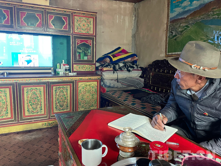 圖為(wei) 索朗頓珠收聽收看時政新聞