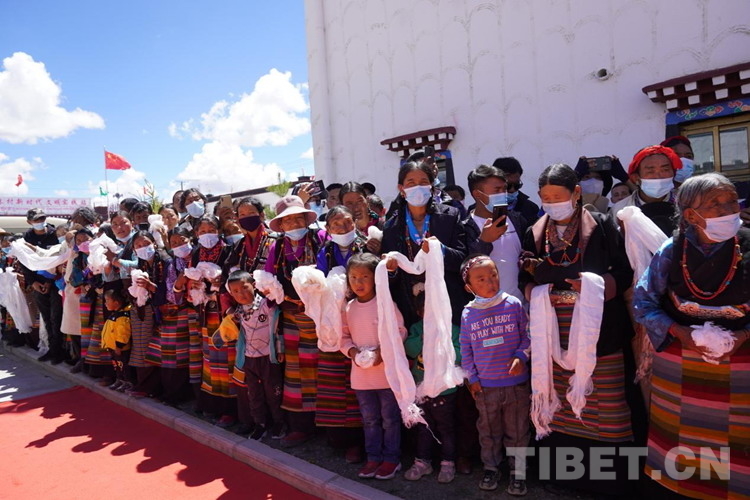 圖為(wei) 嘎吉林村村民及信教群眾(zhong) 在迎候班禪 攝影:王淑
