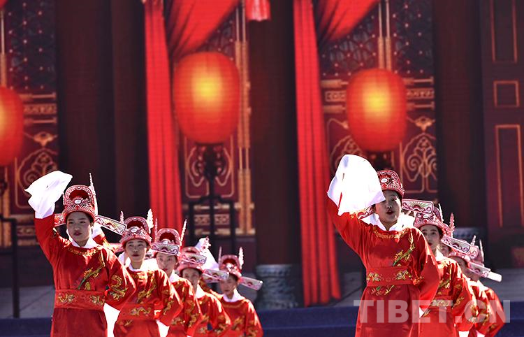 圖為(wei) 2021雅礱文化旅遊節開幕式文藝演出現場,山南市第二高級中學學生表演黃梅戲《女駙馬》選段 攝影:王媛媛
