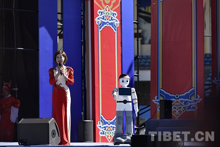 圖為(wei) 2021雅礱文化旅遊節開幕式文藝演出現場,主持人與(yu) 機器人互動 攝影:王媛媛