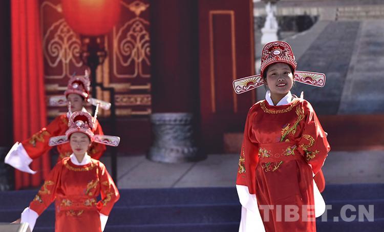 圖為(wei) 2021雅礱文化旅遊節開幕式文藝演出中,山南市第二高級中學生們(men) 表演黃梅戲《女駙馬》選段 攝影:王媛媛