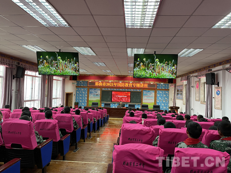 當日下午,邀請那曲軍(jun) 分區幹部走進校園為(wei) 那曲市二中學生開展一次國防教育專(zhuan) 題講座。專(zhuan) 題講座開始前,首先由七年級格桑次仁和巴桑旺姆同學為(wei) 大家深情朗誦《請黨(dang) 放心 強軍(jun) 有我》,一首詩詞朗誦把大家緩緩帶入課堂。由那曲軍(jun) 分區唐鵬同誌運用豐(feng) 富的知識和大量史實,圍繞國防教育的重要意義(yi) 等內(nei) 容為(wei) 大家作了一場精彩的講座,利用媒體(ti) 視頻、圖片資料給師生們(men) 講解了我國國防現狀、國防建設的重要作用,讓學生掌握基本軍(jun) 事知識技能,加深對軍(jun) 隊的認識和理解,整個(ge) 講座旁征博引,數據翔實,觀點敏銳,既有清晰的曆史脈絡,又有具體(ti) 事件的介紹,在同學中引起了強烈共鳴。