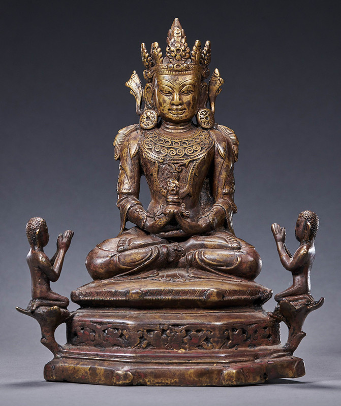 圖為(wei) 明末清初黃銅同侍從(cong) 無量壽佛 國家文物局供圖 攝影:羅征