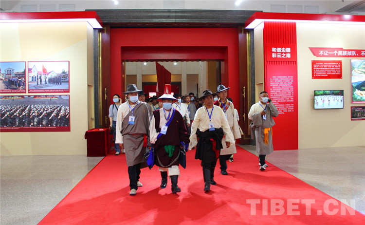 圖為(wei) 西藏自治區基層幹部步入“全國興(xing) 邊富民成就展”展廳 攝影:王茜