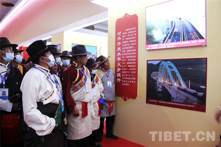 展現西藏發展成就的板塊也吸引了學員們(men) 駐足觀看。尼木縣塔榮鎮雪拉村黨(dang) 總支書(shu) 記紮西次仁指著展板上有關(guan) 產(chan) 業(ye) 的圖片興(xing) 奮地表示,我們(men) 也創辦了特色產(chan) 業(ye) ,帶領鄉(xiang) 親(qin) 們(men) 脫貧致富,我們(men) 要牢記習(xi) 近平總書(shu) 記的叮囑,繼續努力發展特色產(chan) 業(ye) ,走出符合西藏實際的高質量發展之路。