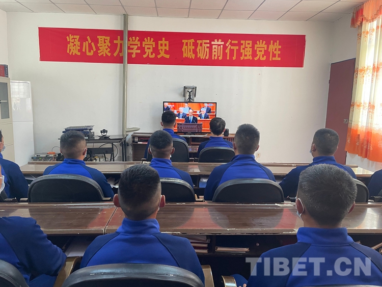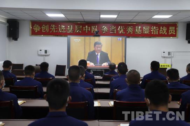 圖為(wei) 那曲市森林消防大隊山南駐防分隊組織觀看紀念辛亥革命110周年大會(hui) 直播