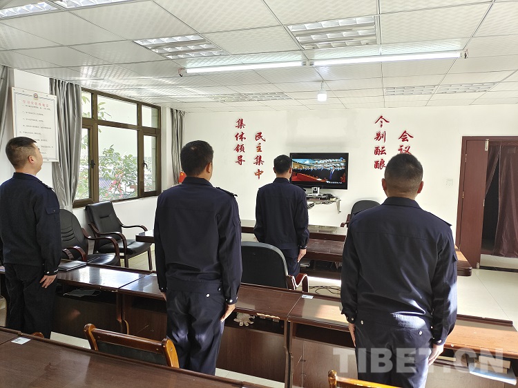 圖為(wei) 林芝邊境管理支隊機關(guan) 民警觀看紀念辛亥革命110周年大會(hui) 直播 攝影:劉安震鏞
