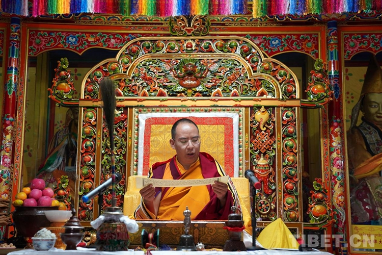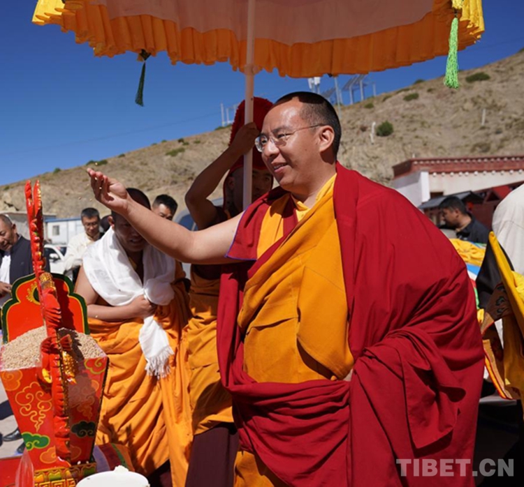 圖為(wei) 班禪在增寺拋灑青稞、祈願豐(feng) 收 攝影:王淑