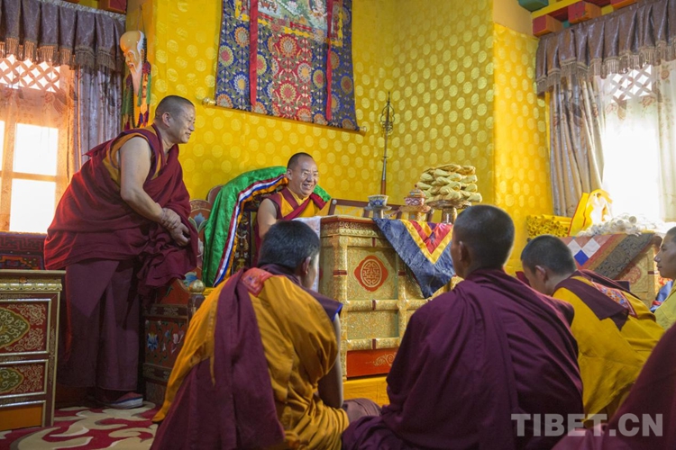 圖為(wei) 班禪在納塘寺抽查僧人背誦經典 攝影:歐帆