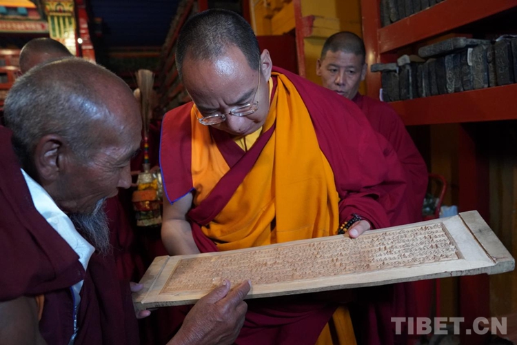 隨後班禪參觀了寺院的印經院,納塘寺印經院被譽為(wei) “西藏文庫”。曾刻製印刷大量的藏文經典著作。其中包括大藏經《甘珠爾》108部、《丹珠爾》225部,都是完整的精刻版,除文字外還有套色版畫。此套印版的首次印刷本現珍藏於(yu) 紮什倫(lun) 布寺和布達拉宮。