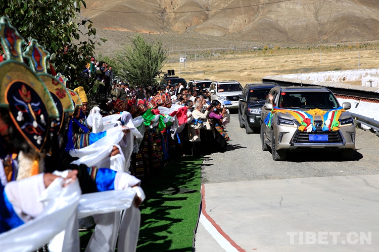 沿途農(nong) 牧區的信教群眾(zhong) 聞訊前來,身著傳(chuan) 統節日盛裝、手捧潔白哈達,隊伍綿延數裏,虔誠迎候班禪的到來。每當遇到前來迎接的信教群眾(zhong) ,班禪便示意車輛緩行,開窗向信眾(zhong) 揮手致意,氣度不凡又格外親(qin) 切。