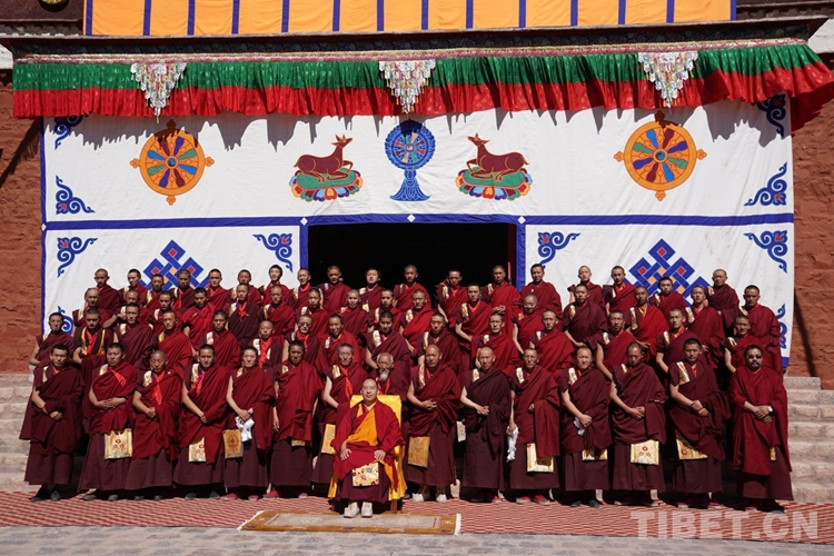 圖為(wei) 班禪在亞(ya) 木呂龍寺與(yu) 僧人合影留念 攝影:王淑