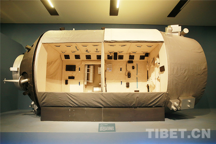 “天宮一號”實驗艙模型,是展廳裏相對“年輕”的展品。