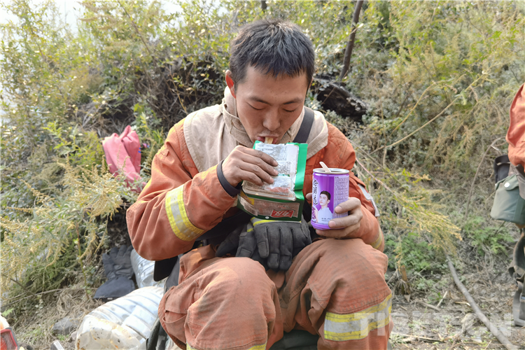 連日來,在火場上,席地而睡的消防員和寧吃幹糧不拿群眾(zhong) “一針一線”的消防員隨處可見。(新利平台 通訊員/張強 夏明勇)