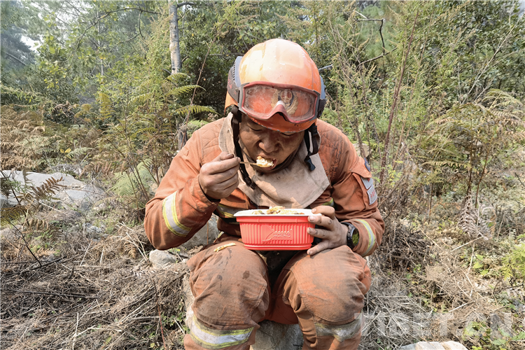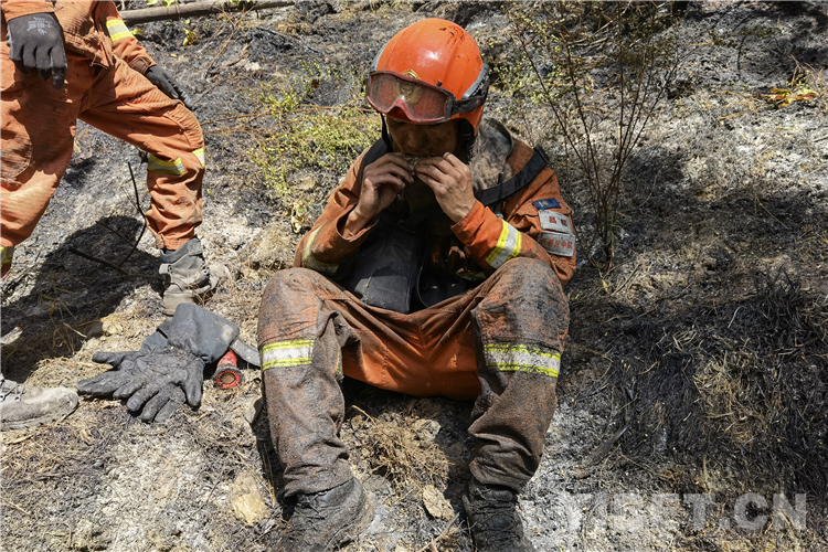 昌都市森林消防支隊卡若區中隊負責清理火場南側(ce) 麵積最廣的區域,由於(yu) 情況緊急,火場坡度接近80°,加上每名消防員負重20公斤以上,指戰員們(men) 出發時隻帶了滅火裝備和少量的飲用水,忍饑挨餓,每日連續奮戰將近10小時以上。期間,他們(men) 婉拒了好幾撥主動來送水、送幹糧的群眾(zhong) 。