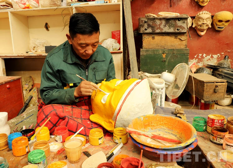 47歲的西洛是西藏自治區級非物質文化遺產(chan) 項目“拉薩布製麵具製作技藝”的代表性傳(chuan) 承人。