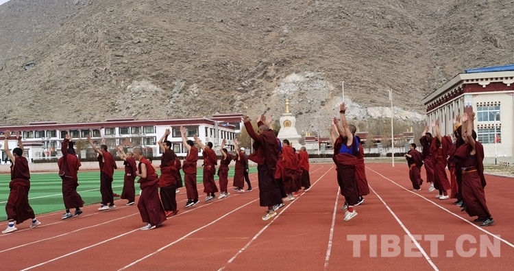 圖為(wei) 佛學院學員在上體(ti) 育課 攝影:王淑