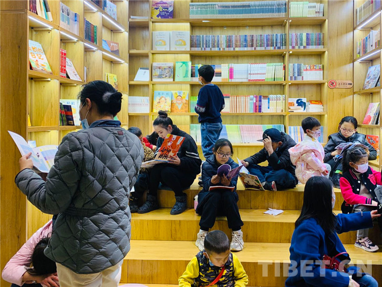 “每到周末,爸爸就會(hui) 帶我來到書(shu) 店做作業(ye) 、看書(shu) ,爸爸也會(hui) 在一旁學習(xi) 、讀書(shu) 。我現在上一年級,有很多字不認識,爸爸會(hui) 教我在閱讀中認識更多的字,讀懂更多的故事,這讓我很快樂(le) 。”小讀者丹增德慶手捧著書(shu) 說到。
