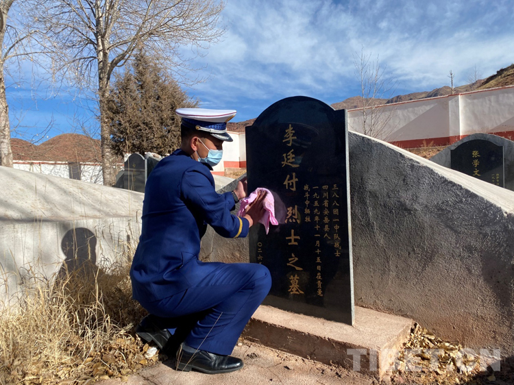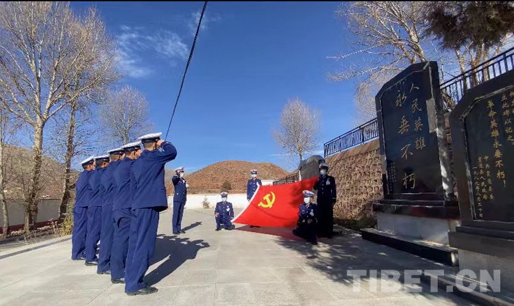圖為(wei) 貢覺縣駐防分隊祭奠英烈